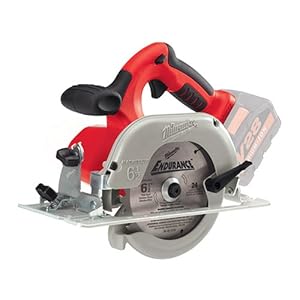 The V28 cordless woodcutting circular saw from Milwaukee is powerful and practical. You'll be deeply impressed by the speed of cutting and overall run time, and this saw comes standard with tactile grips for even more control while cutting. It features lightweight magnesium guards that reduce unnecessary weight without compromising operation, and a high-strength aircraft aluminum shoe that resists bending for accuracy and dependability.