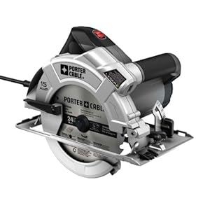 Serious Power and Helpful FeaturesCapable of producing up to 5,000 rpm for crosscutting lumber or ripping plywood, Porter-Cable’s PC15CSLK circular saw comes with a hearty 7-1/4 inch, 24-tooth carbide-tipped Porter-Cable blade. This blade provides reliable cutting when used on a wide-range of materials and can bevel edges between 0 to 45 degrees. The saw’s bevel adjustments promote a more varied range of cutting applications. The saw also includes a depth adjustment feature, a spindle lock that makes single wrench bit changes possible, and a soft grip rear handle and boot that decrease tool vibrations when cutting over a long time.